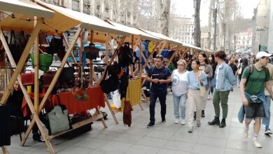 خیابان‌های شهر تفلیس خط عابر پیاده دارند یا زیر گذر وجود دارد در خیابان.